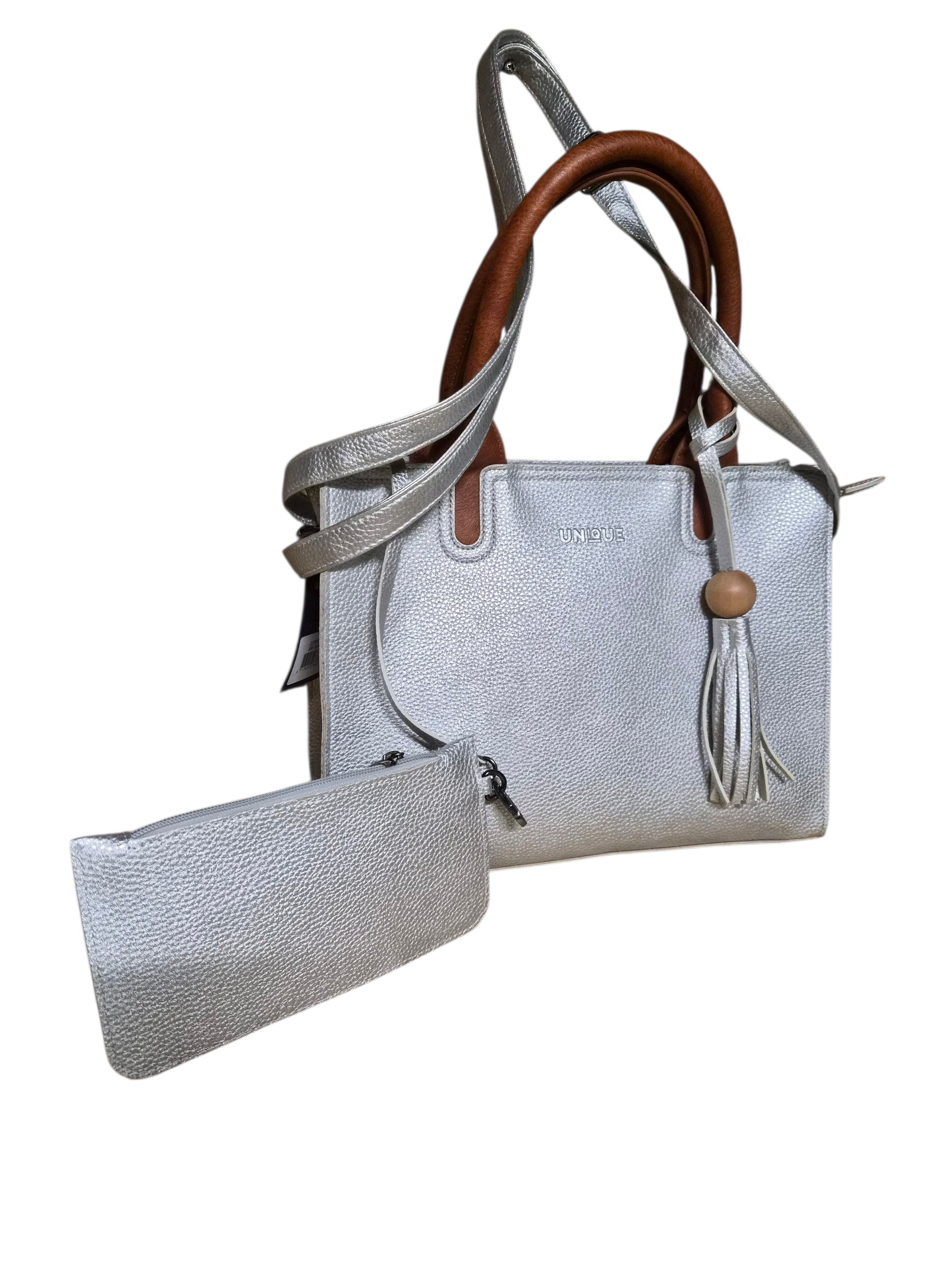 Deze elegante handtas in een zachte lichte tint met warme bruine accenten is de perfecte combinatie van fashion en functionaliteit. De tas wordt geleverd met een bijpassend etuitje voor je kleine essentials. Dankzij de stevige handvatten en verstelbare schouderband draag je ‘m precies zoals jij wilt.